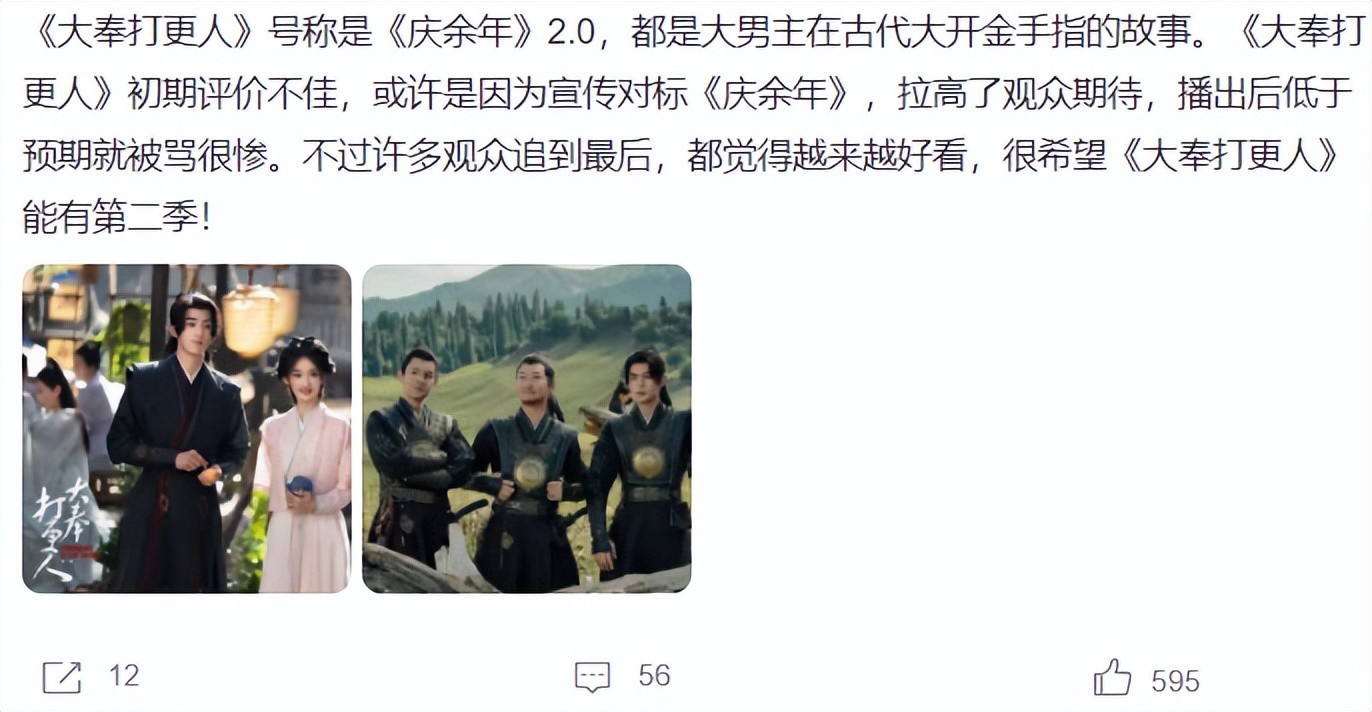 这样的情况出现,很多网友都被《大奉打更人》的22.1亿播放量打脸。《大奉打更人》播出的时候,有很多观众都非常认可这部剧,并开始安利,可是安利的声音却被吐槽的声音给掩盖了。